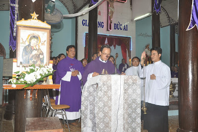 Vào lúc 8g thứ Tư ngày 26/3, Đức cha Matthêô đã đến Giáo xứ Kim Châu để dâng thánh lễ
