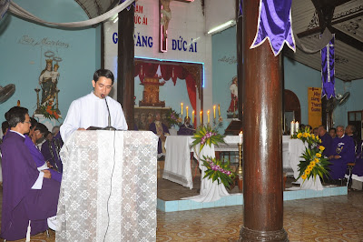 không qua khỏi, nhưng may thay cuối cùng đó chỉ là một dấu chấm phẩy. Cách đây 2 ngày, một dấu chấm đã hoàn tất cuộc đời của ngài: một dấu chấm trọn nói lên rằng cuộc đời của ngài đã trọn vẹn ý nghĩa. Trong đoạn Tin Mừng hôm nay, Chúa Giêsu nói: “Đã đến lúc Con Người được tôn vinh”. Chúng ta nhìn lại của đời của cha Gioakim để tôn vinh một vị linh mục của giáo phận Qui Nhơn chúng ta, một vị linh mục hoàn toàn vâng theo ý Chúa”.