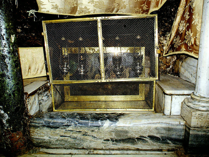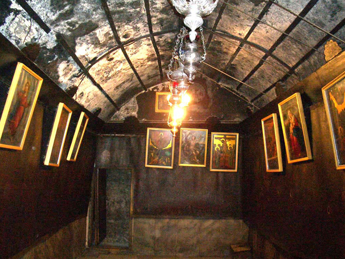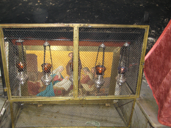Nhà thờ được xây cất ngay trên hang đá Bê lem. Chứng cứ đầu tiên về hang Bê lem được tìm thấy trong quyển sách của ông Justin Martyr viết vào khoảng năm 160. Năm 327 thánh nữ Helène, mẹ của hoàng đế Constantin I cho xây cất nhà thờ Giáng Sinh. Năm 529 nhà thờ bị đốt cháy trong cuộc nổi dậy của người Samaritan. Năm 565 hoàng đế Justinian I cho xây dựng lại và tồn tại đến nay. Khi Bê lem bị người Ba Tư xâm chiếm vào năm 614, viên chỉ huy Shahrbaraz đã không ra lệnh tiêu hủy nhà thờ này vì nhìn thấy hình ba vị Vua phương Đông với trang phục của dân Ba Tư. Trong các lần chiến tranh với Hồi giáo, nhà thờ đã ngụy trang bằng cách làm cổng vào nhỏ lại và mặt tiền không có vẽ là nhà thờ. Đó là lý do tại sao ngày nay nhà thờ Giáng Sinh không có chút gì uy nghi cao cả. Có lẽ nhờ thế, nhà thờ Giáng Sinh đã giữ được tinh thần đơn sơ khó nghèo như lúc Chúa sinh ra cách nay 2000 năm! ![]() Khu nhà thờ Giáng Sinh nhìn từ quảng trường Máng Cỏ (Manger Square) ![]() Phải lại gần hơn mới thấy cổng vào nhà thờ ![]() Và phải cúi mình xuống mới vào được ![]() Chánh điện bên trong nhà thờ - Trên nền nhà là nơi khai quật... ![]() các nhà khảo cổ đã tìm được nền nhà thờ cũ từ năm 327 ![]() Tới gần bàn thờ - chú ý phía bên phải nơi có người đứng là cổng xuống hang đá Bê Lem ![]() Bên trái bàn thờ có hình Đức Mẹ và Chúa Hài Đồng với nến cháy lung linh ![]() Và khi tắt nến ![]() Cổng bước vào hang đá Bê Lem ![]() Hành lang nhỏ dẫn tới hang đá Bê Lem ![]() Bước xuống các bậc thang là nơi Con Chúa Ra Đời Bên phải: nơi Chúa sinh ra – Bên trái: máng cỏ ![]() Máng cỏ nơi Chúa nằm sau khi sinh ra ![]() ![]() Nơi Chúa Giêsu sinh ra được đánh dấu với ngôi sao 14 cánh ![]() Các chữ vòng quanh bên trong ngôi sao: Hicde Virgine Maria Jesus Christus Natus Est Có nghĩa là: Nơi đây Trinh Nữ Maria đã hạ sinh Đức Giêsu Kitô ![]() Chính diện hang đá Bê Lem ![]() Các hàng cột bên trong nhà thờ ![]() Xen kẻ các bình đèn ![]() Theo kiểu Chính Thống Giáo ![]() Tạm biệt hang đá Bê Lem ![]() Tạm biệt nhà thờ Giáng Sinh ![]() Phía trước Nhà Thờ Giáng Sinh là Quảng Trường Máng Cỏ với đền thờ Hồi giáo. |